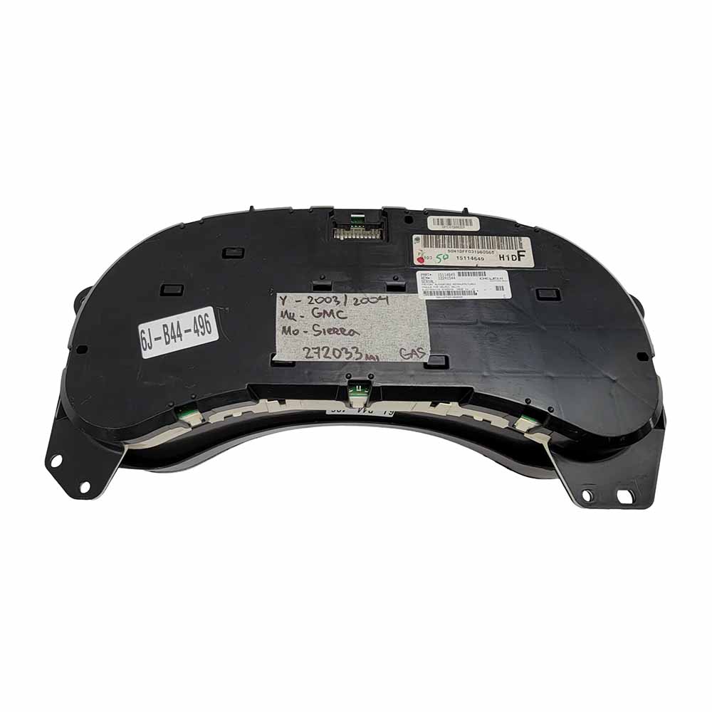 This is USED Dashboard Instrument Cluster for a 2003-2004 GMC SIERRA PART# 15114649 . Please read the product information below before ordering or Call us 954-842-4225 (CANADA 416-749-1212) we’ll be glad to assist you