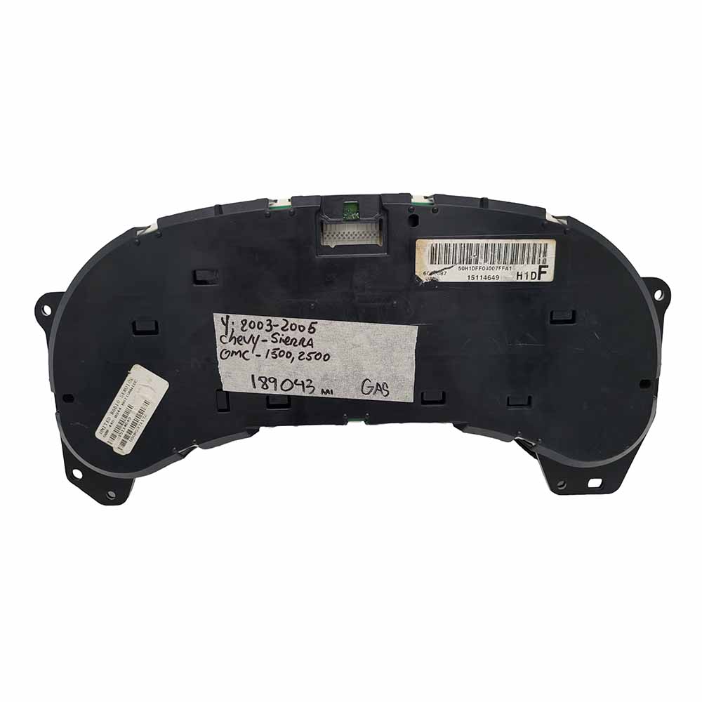 This is USED Dashboard Instrument Cluster for a 2003-2005 CHEVY SIERRA – GMC PART# 15114649 . Please read the product information below before ordering or Call us 954-842-4225 (CANADA 416-749-1212) we’ll be glad to assist you