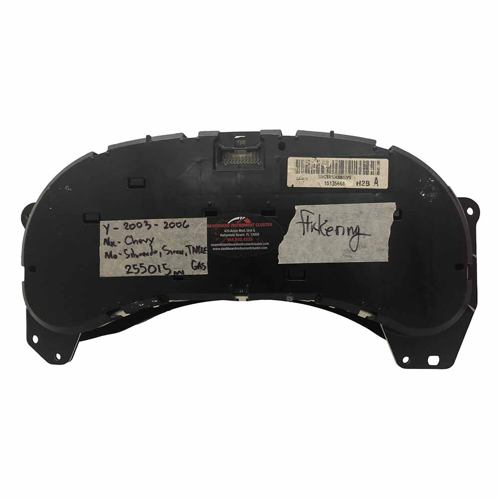 This is USED Dashboard Instrument Cluster for a 2003-2006 CHEVY SILVERADO PART# 15135668 . Please read the product information below before ordering or Call us 954-842-4225 (CANADA 416-749-1212) we’ll be glad to assist you